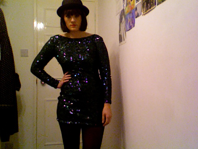 It was my friends birthday on saturday night and I wore this little dark green sequin number. I bought it aaages ago but didn't feel it was wearable until autumn (the length needs tights to preserve decency I feel!). It is a little on the short side, but I had to have it as it exhibits one of my favourite features that any dress can possess: a low back. All sensual sexy pieces would have it if I had my way, its the only low cut I ever want. I kept the rest of the outfit simple with blacks, retro feel make-up and gold details. Despite that I did want to keep it interesting with a mixture of textures, cue my favourite material - leather...which I also feels toughens it up and makes the look less obvious. Bring on the christmas parties....